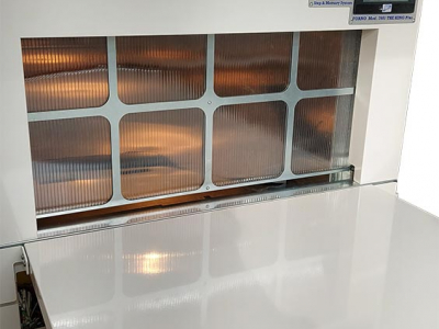 Riscaldamento ventilato , con infrarossi e/o entrambi; il tutto assistito da un sistema elettronico (senza necessità di aria compressa) che permette di programmare i tempi di apertura/chiusura dei portelloni e decidere il tempo di stazionamento all'interno della camera di asciugatura.Si può scegliere la velocità del nastro trasportatore e creare cicli di lavoro con la tecnologia STEP, può lavorare in modalita' automatica o manuale programmando dal display le altezze desiderate.In modalita' Infrarossi si può regolare l'intensità della potenza dal 25 a 100%, garantendo un'asciugatura perfetta utilizzando una potenza massima di soli 1000 watt.