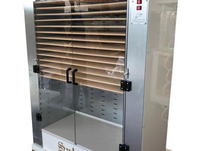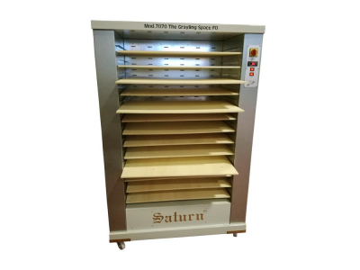 Una capacità totale di 25 ripiani posizionabili da un minimo di 5 cm ,l'uno dall'altro , di dimensioni 90 x 50 cm (15 in dotazione). L'ampia camera interna ha dimensioni 92 x 52 x 139 cm ,ciò rende possibile il posizionamento dei ripiani anche a diverse distanze. Il pannello comandi rende il Forno semplicissimo da usare. Il forno dispone di un riscaldamento ventilato a doppia turbina; la temperatura è assistita da un sistema elettronico che permette di programmare un flusso progressivo d'aria all'interno della cabina di asciugatura (max 90°C).