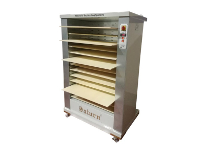 Dotato di 5 ripiani mobili riscaldati, variatore di velocità e temperatura regolabile fino a 110°C.