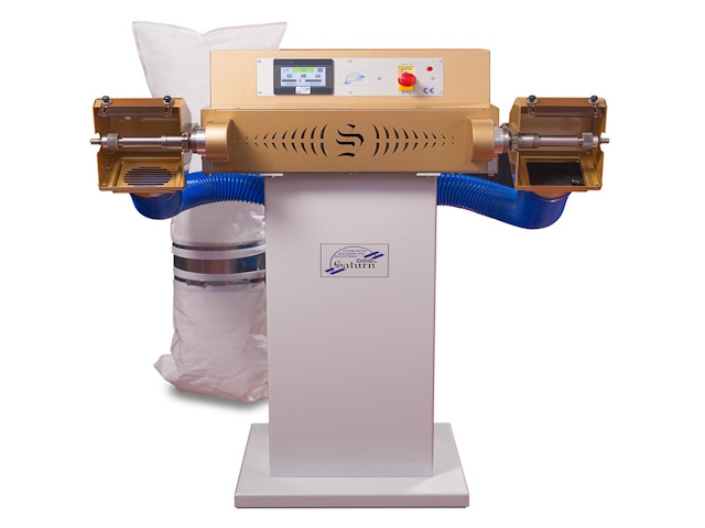 Ogni braccio può montare dischi ad espansione e tamponi diametro 30 mm,20 mm e miniutensili diametro 6 mm per piccole e particolari rifiniture.Disponibile anche la versione Mod.743B-VRAVP TOUCH con sensore di prossimità che arresta il moto degli alberi in assenza dell'operatore, con la possibilità di far spengere anche l'aspiratore.